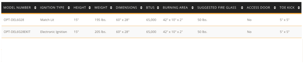 The Del Mar Fire Pit is 60″ long x 28″ wide and stands 15″ tall.