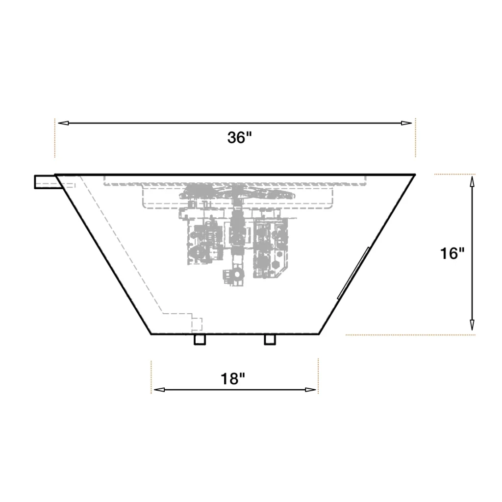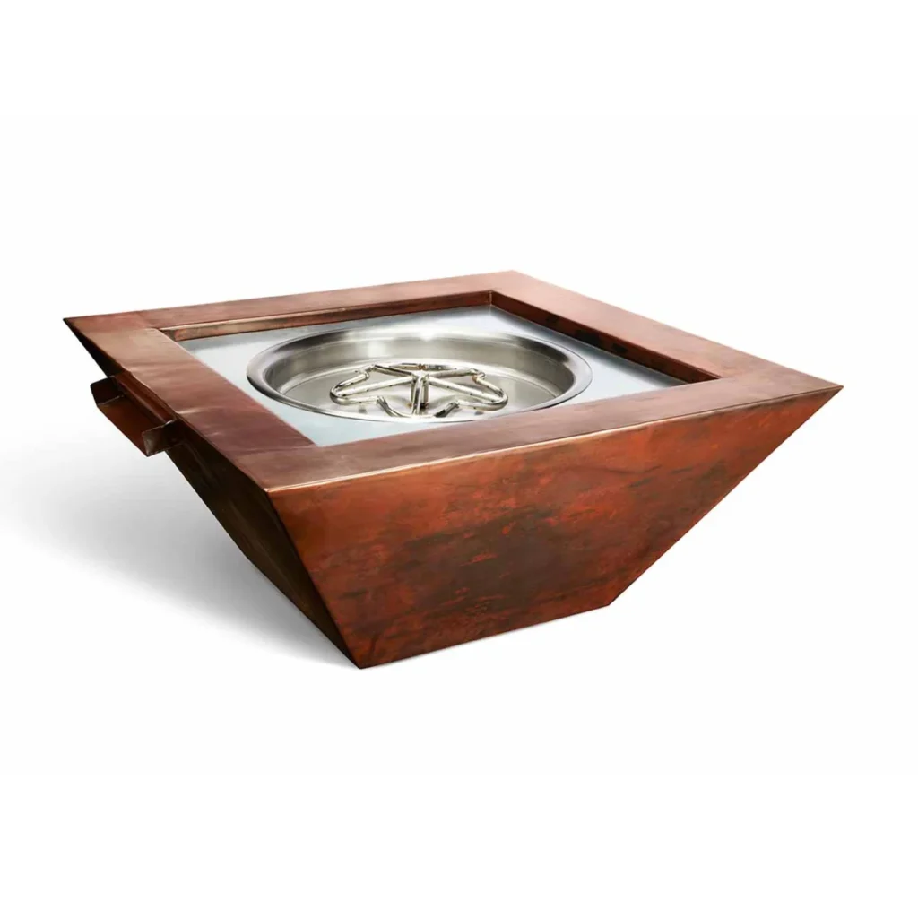 This CSA-certified Sierra Fire & Water model is the sister to the Sierra Copper Fire Bowl (without the water feature). The square-shaped bowl is 36″ x 36″ across the top tapering down to 18″ x 18″ at its base, and stands 16″ high.