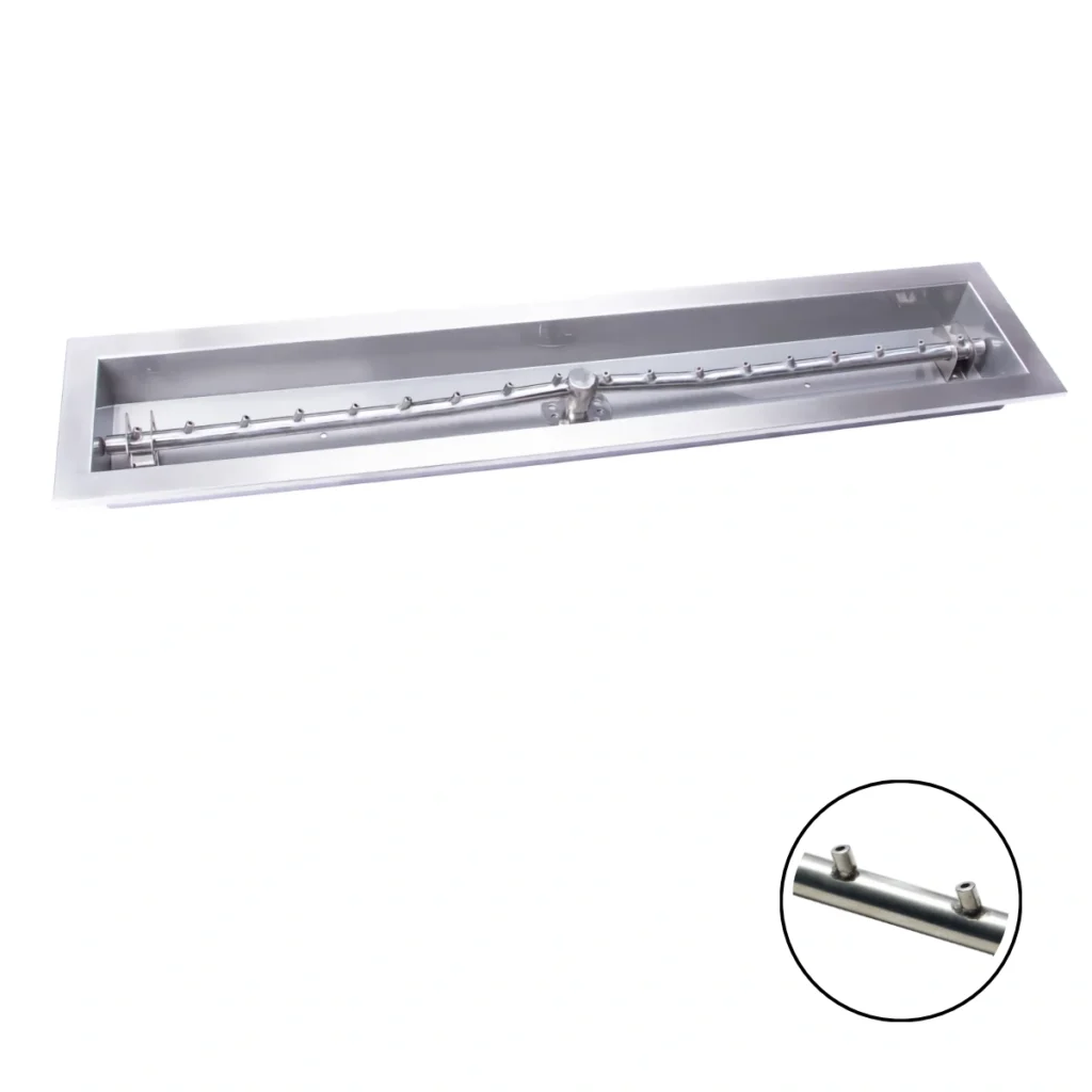 The Stainless Steel HPC Linear Trough Fire Pit Pan, equipped with the patented Torpedo T-Burner, delivers a captivating flame display with optimized gas efficiency, thanks to its precision-engineered nozzle.