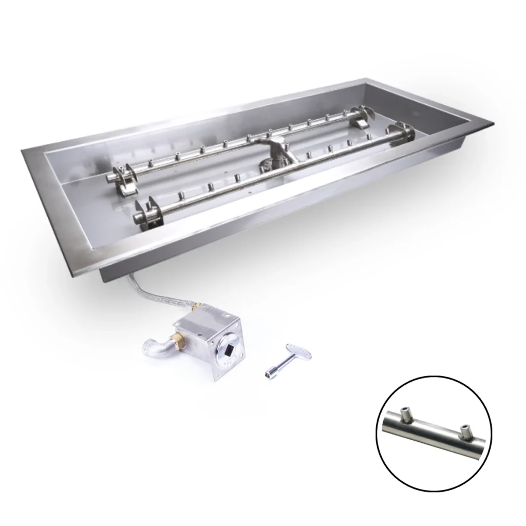 The HPC MLFPK Match Lit Series offers this CSA-certified fire pit kit in a rectangular configuration featuring the Torpedo H-Burner. It delivers an impressive flame, and installation and operation are simple and straightforward.