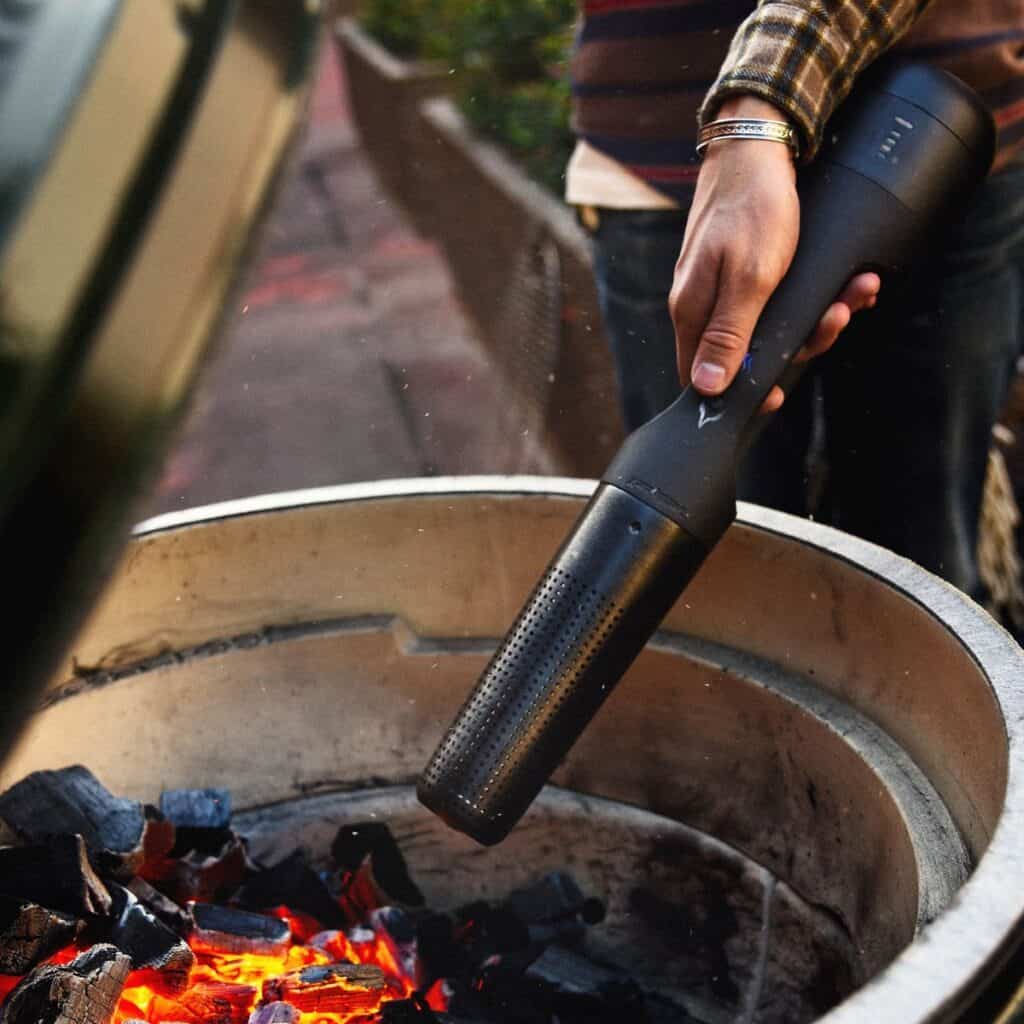 A Looft lighter 1 is the fastest charcoal lighter available; it will start the fire in 60 seconds.