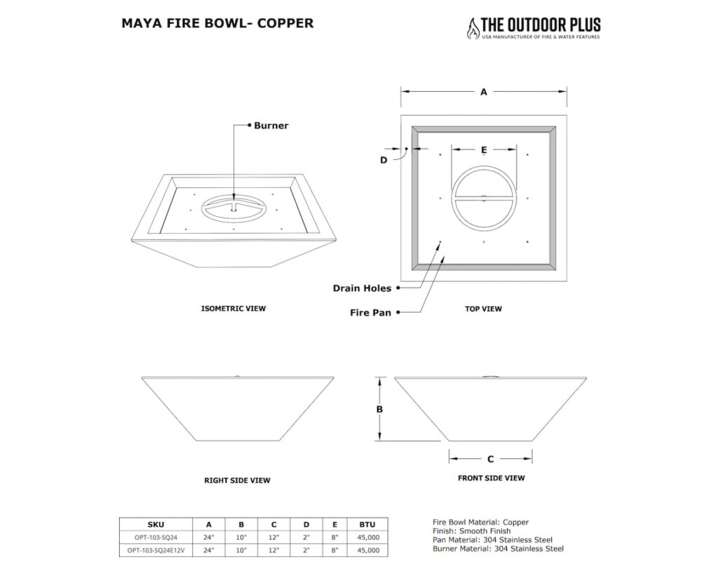 Maya Fire Bowl 30 Inch Square by The Outdoor Plus company