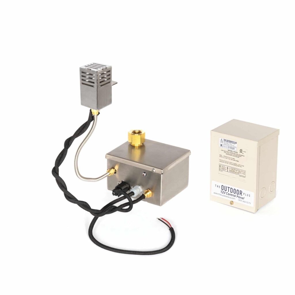 This is a CSA-Certified Electronic Ignition Fire Pit Kit from The Outdoor Plus uses the SWEIS unit which stands for Smart Weather Electronic Ignition System.