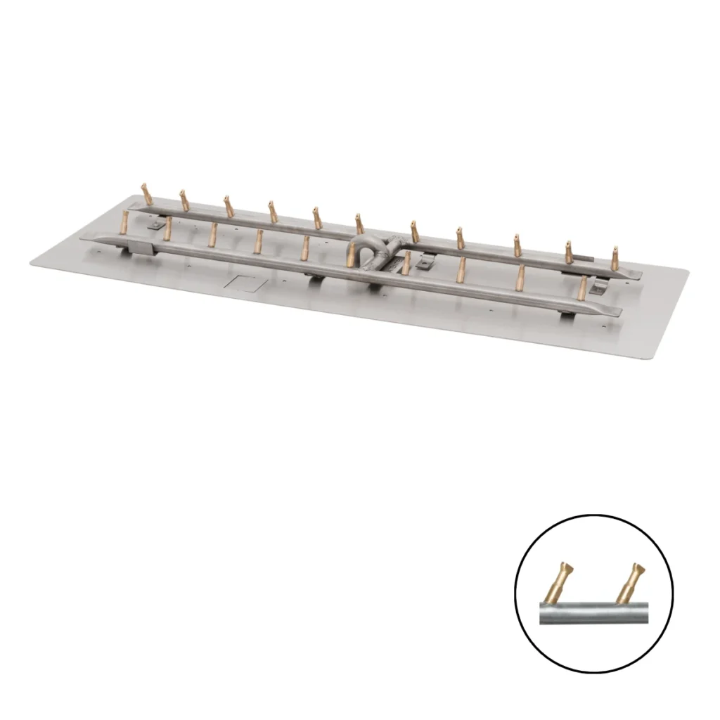 The pan sizes range from 24″ to 96″ long with a constant width of 12″. The length of the burner increases as the fire pit pans get longer, however, the burner is always 6″ wide for all size options.