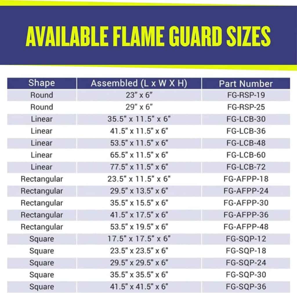 For more information about flame guards see our Fire Pit Wind Guards page.