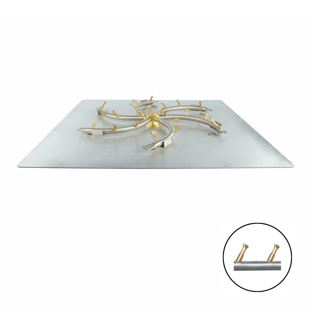 Square Flat Fire Pit Pan with Stainless Steel Triple S Bullet Burner by The Outdoor Plus